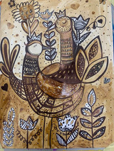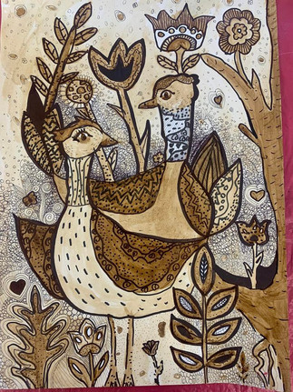 малювали композицію «Птахи».Вони вперше малювали кавою! Усі отримали задоволення від роботи, а їх батьки були взахваті від їх творінь!